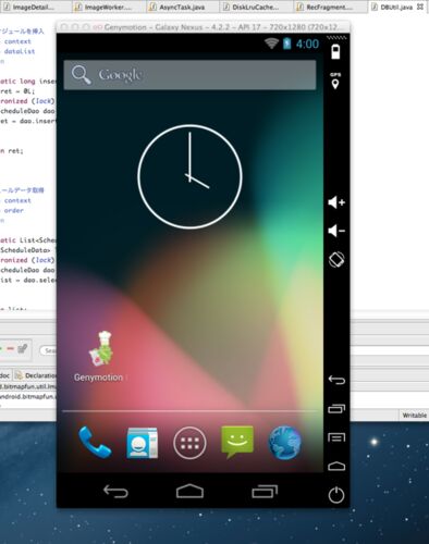 「Genymotion」凄くいいよ。 導入楽だし、動作がサクサクだし、Androidな人たちはこれ使えば凄く幸せになれるんじゃないかな。 フラグシップ系の端末イメージが最初からそろっているのも素敵。